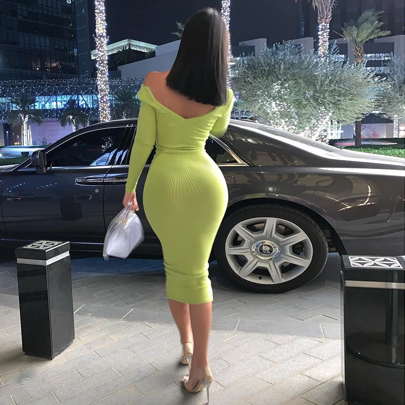 Special Offer NewAsia kobiety jesień sukienka 2019 z długim rękawem bawełna prążkowane sukienki Maxi głębokie dekolt w serek Off ramię Midi obcisła sukienka z dzianiny szata Discount 58% Today!
