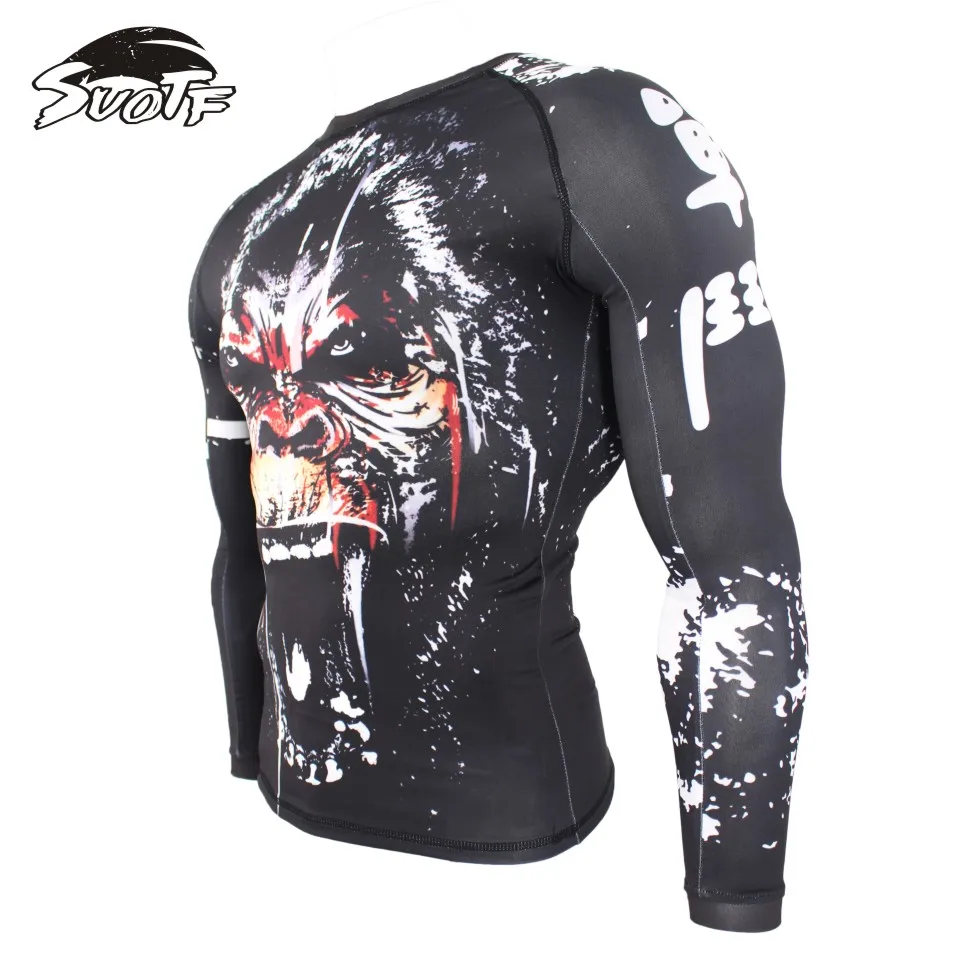 Special Offer SUOTF MMA Fitness tatuaż wzór małpy tajski boks sweter sportowy koszulki bokserskie z długim rękawem tygrys muay thai koszulki MMA Discount 41% Today!