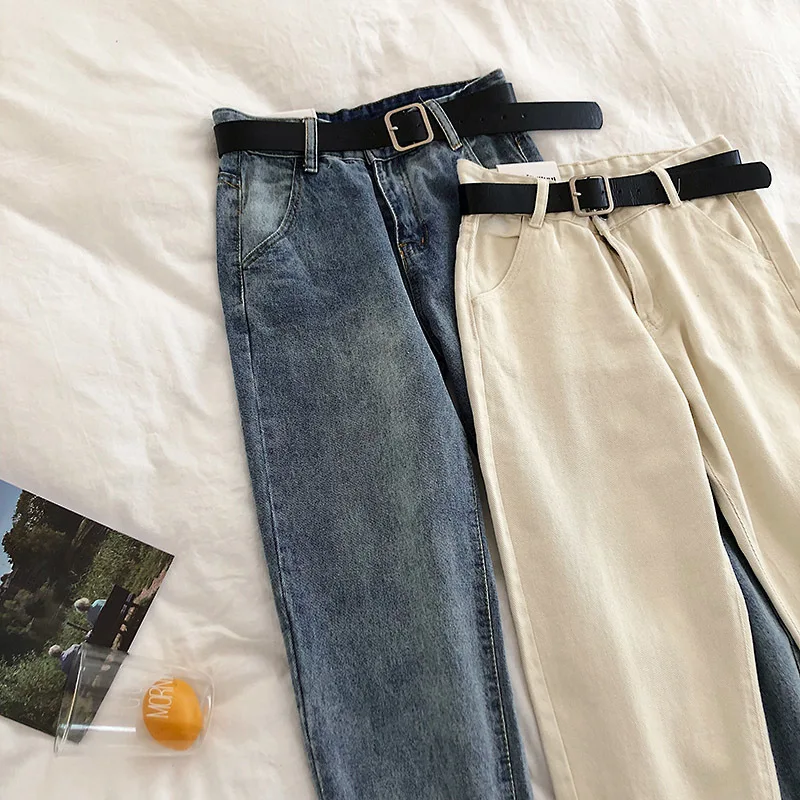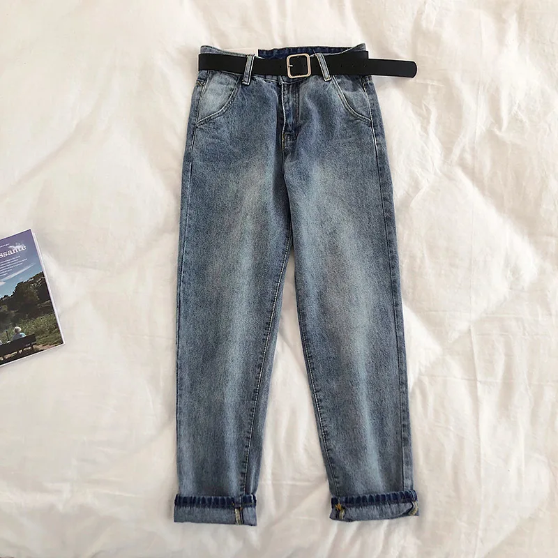 Product Name: 2019 wiosna kobiety wysokiej talii szarawary dżinsowe spodnie z paskiem główna ulica kobiety chłopak Denim