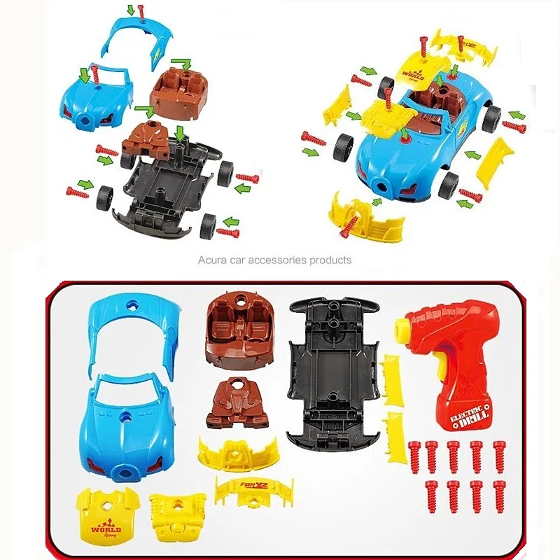 Product Name: DIY montaż Model samochód wyścigowy zestaw dzieci wiertła śruby zabawki budynek samochodu ze światłami i dźwiękiem dzieci rozbierać narzędzie wiertarka zabawki
