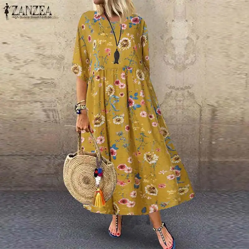 Special Offer Czeska damska sukienka Plus rozmiar damska, drukowana długa, maksi Vestidos ZANZEA damska Casual luźna przyjęcie świąteczne plażowa letnia sukienka Discount 45% Today!