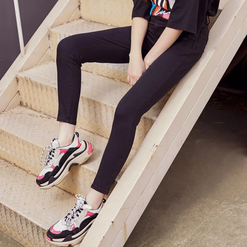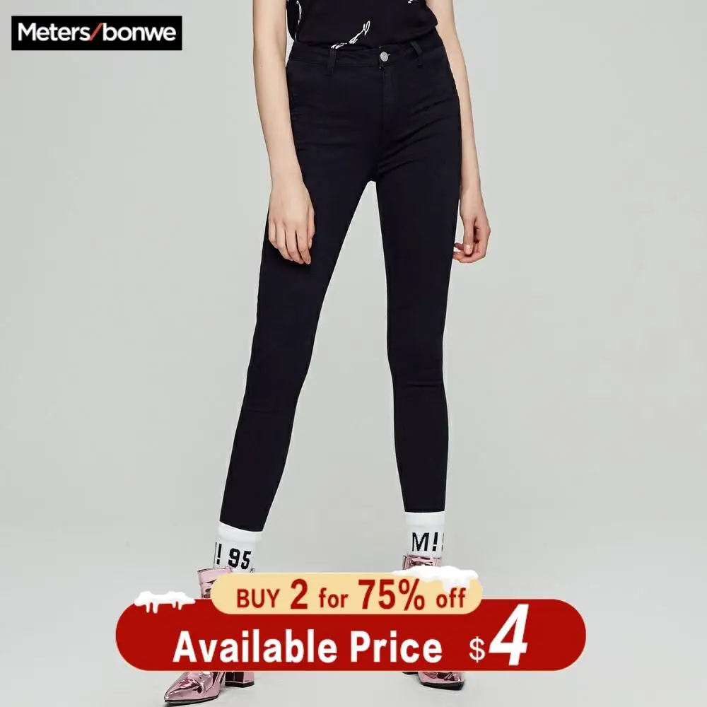 Special Offer Metersbonwe dopasowane dżinsy dla kobiet miękkie dżinsy podstawowe proste wzornictwo jednokolorowe spodnie jeansowe ołówkowe wysokiej jakości rozciągliwa talia dżinsy Discount 7% Today!