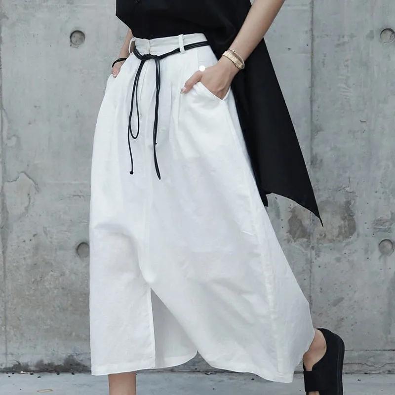 Special Offer [EAM] 2019 nowa jesienno zimowa bawełniana pościel kobiety moda fala okrągłe nieregularne podział luźne dorywczo spodnie krzyżowe LA456 Discount 17% Today!