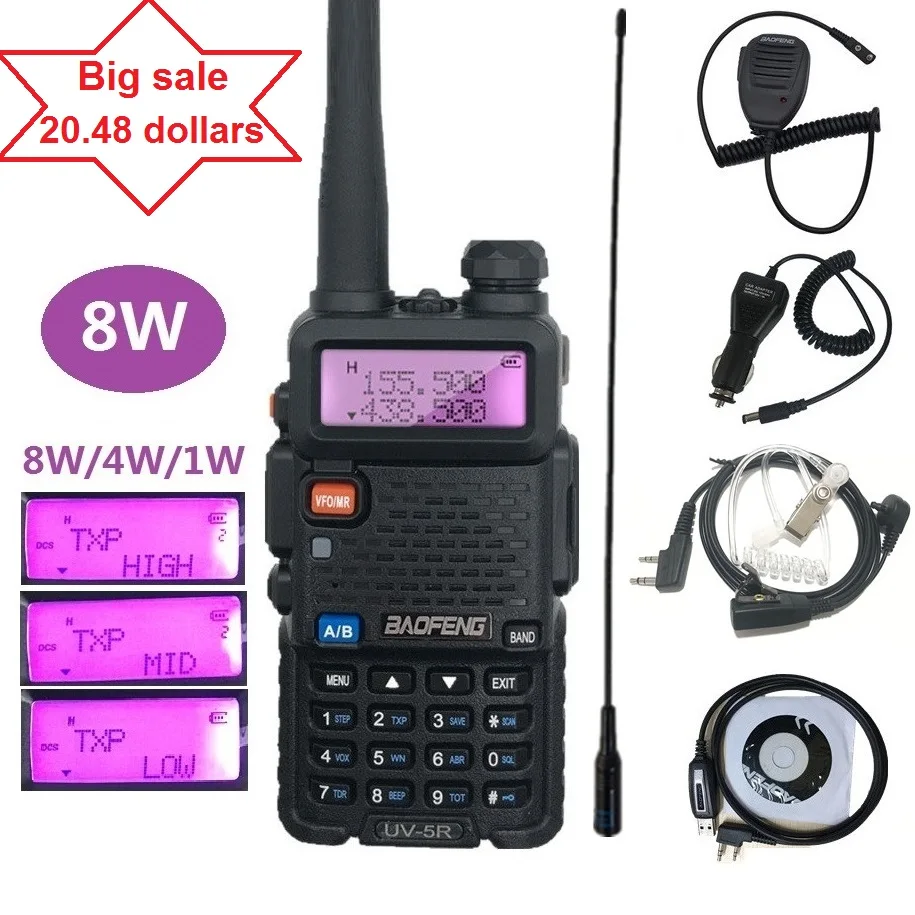 Special Offer BAOFENG UV 5R 8W Walkie Talkie VHF UHF, zarówno amatorów, jak i szynki cb Radio stacji Transceiver HF PMR446 polowanie Radio Amador skaner VOX UV 5R Discount 18% Today!