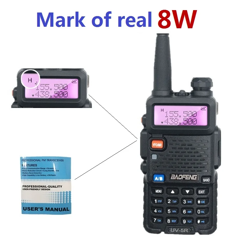 Product Name: BAOFENG UV 5R 8W Walkie Talkie VHF UHF, zarówno amatorów, jak i szynki cb Radio stacji Transceiver HF PMR446 polowanie Radio Amador skaner VOX UV 5R