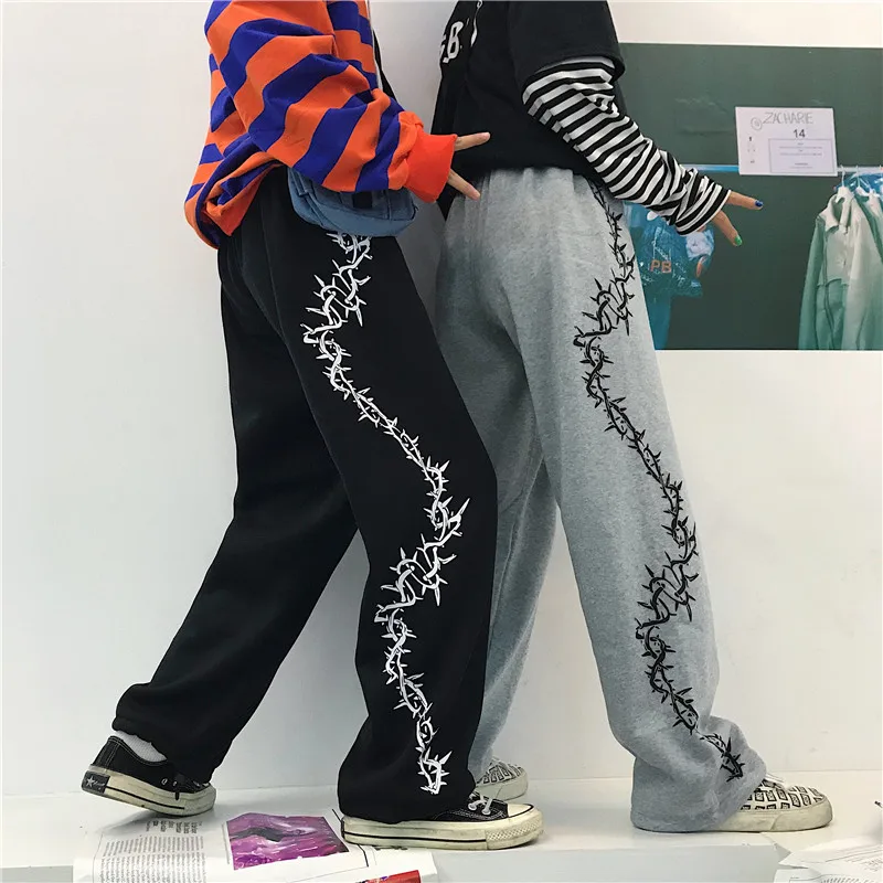 Special Offer Spodnie harajuku damskie Thorny Print sznurkiem spodnie do biegania wiosna jesień dorywczo luźne spodnie damskie kobiece Discount 22% Today!