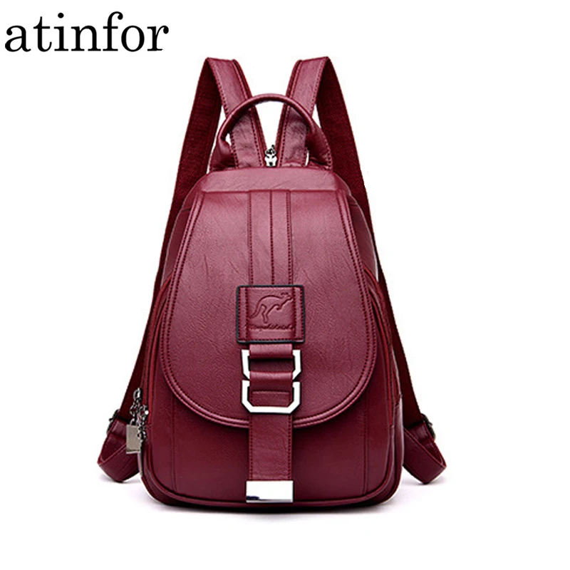 Special Offer Atinfor marka z zabezpieczeniem przeciw kradzieży kobiety skórzane plecaki torebka Vintage kobieca torba na ramię podróż mały plecak pani Discount 41% Today!