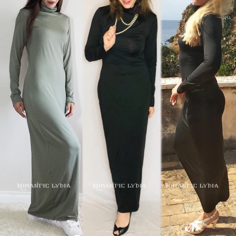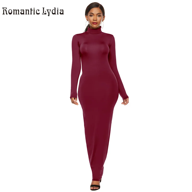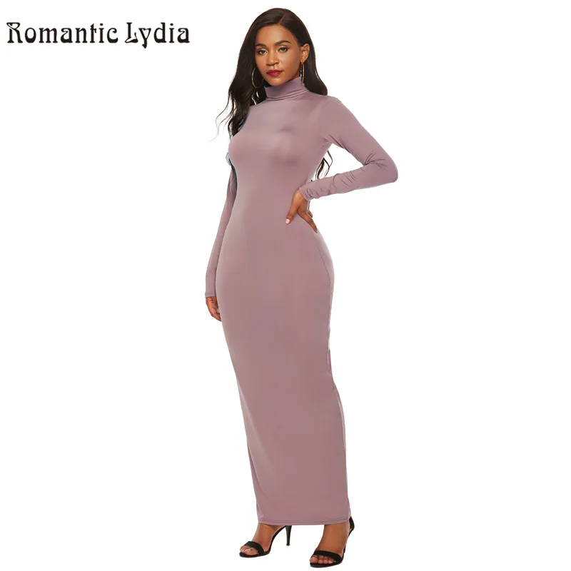 Product Name: Długa obcisła sukienka jesienne zimowe sukienki damskie 2018 Solid Color Slim golf Maxi sukienka Plus rozmiar
