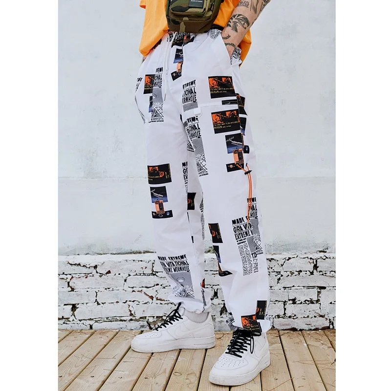 Product Name: 2019 letnie biegaczy Hip Hip Pant nadruk gwiazdy mężczyźni Harajuku Sweatpant Streetwear moda casualowe spodnie dresowe spodnie dresowe białe