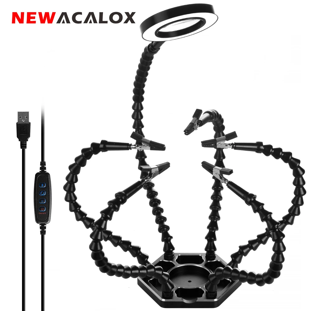 Special Offer Stacja spawalnicza NEWACALOX z 3X USB lupa z lampą led PCB uchwyt do lutownicy narzędzie warsztat trzecia pomocna dłoń 6pc elastyczne ramiona Discount 53% Today!